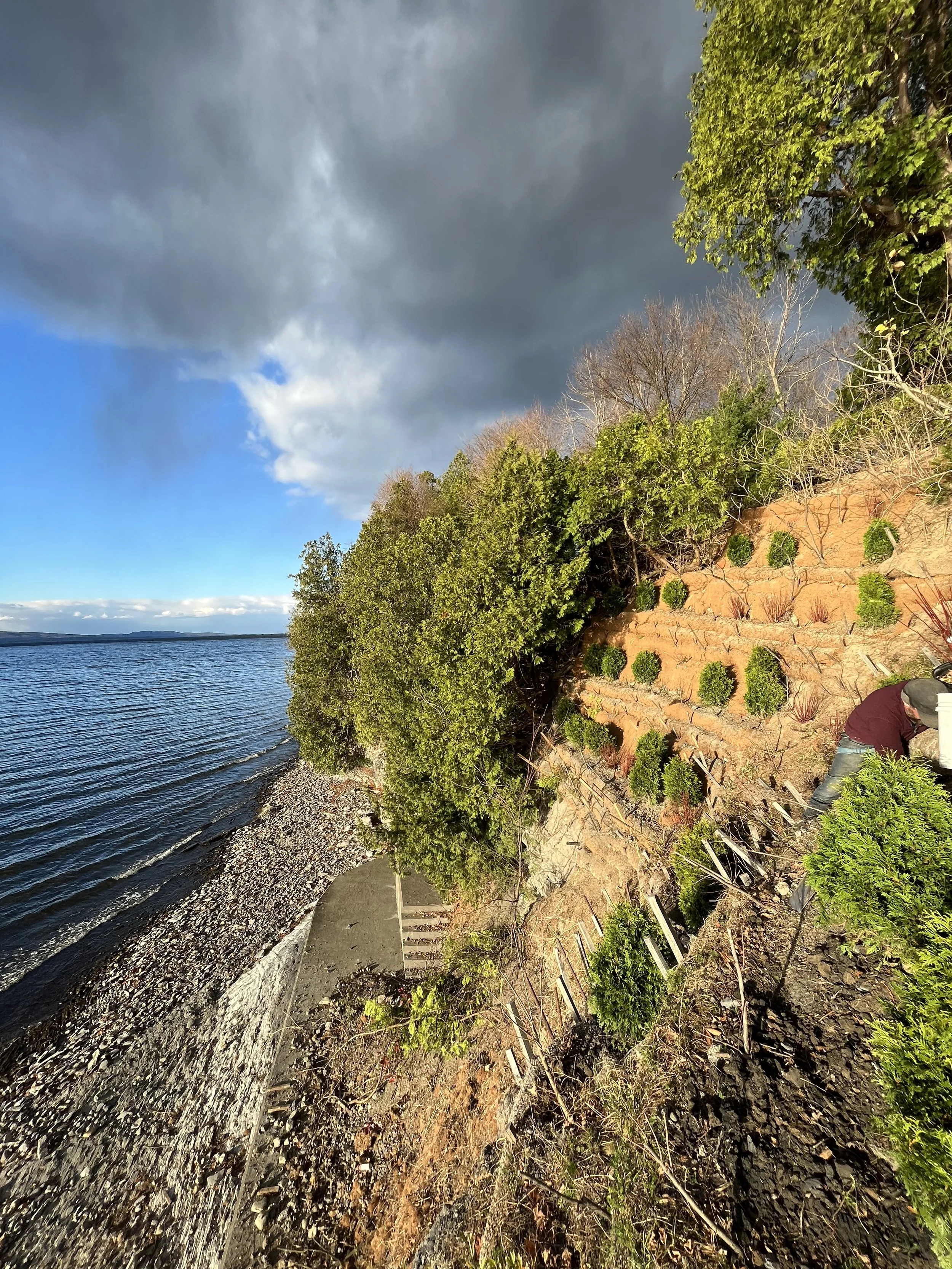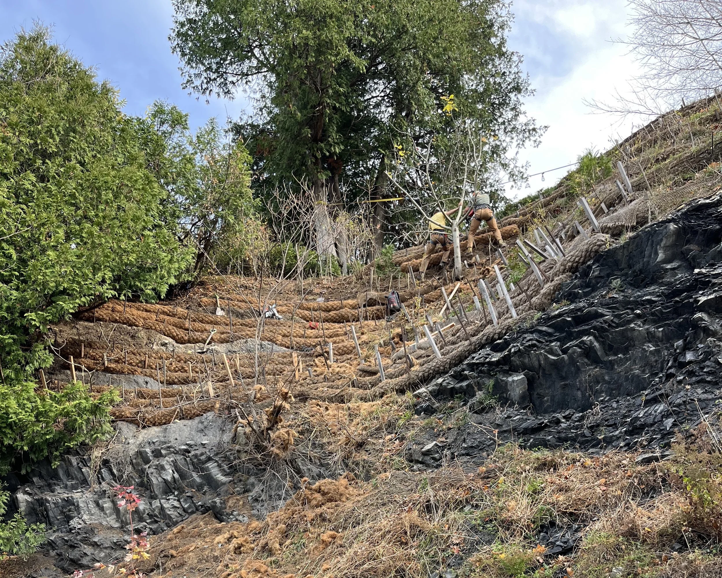 Saving an eroding cliffside with coconut coir terracing, hundreds of native plants, and many hours of labor