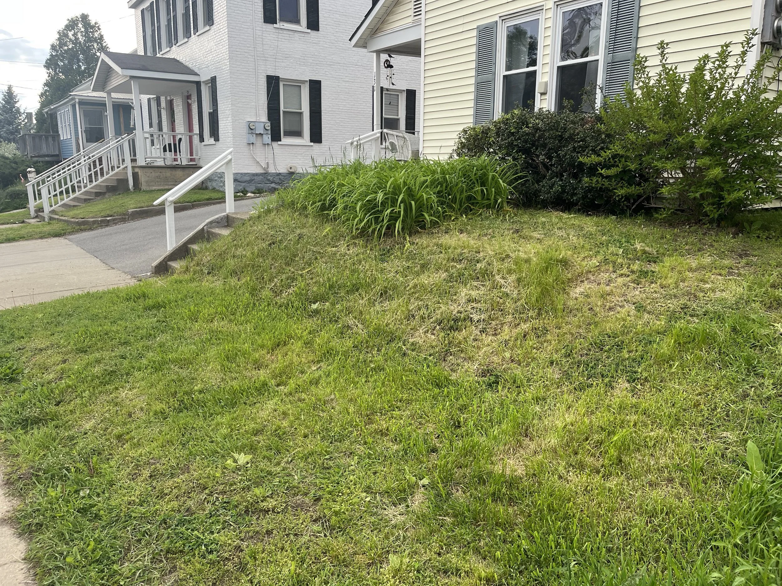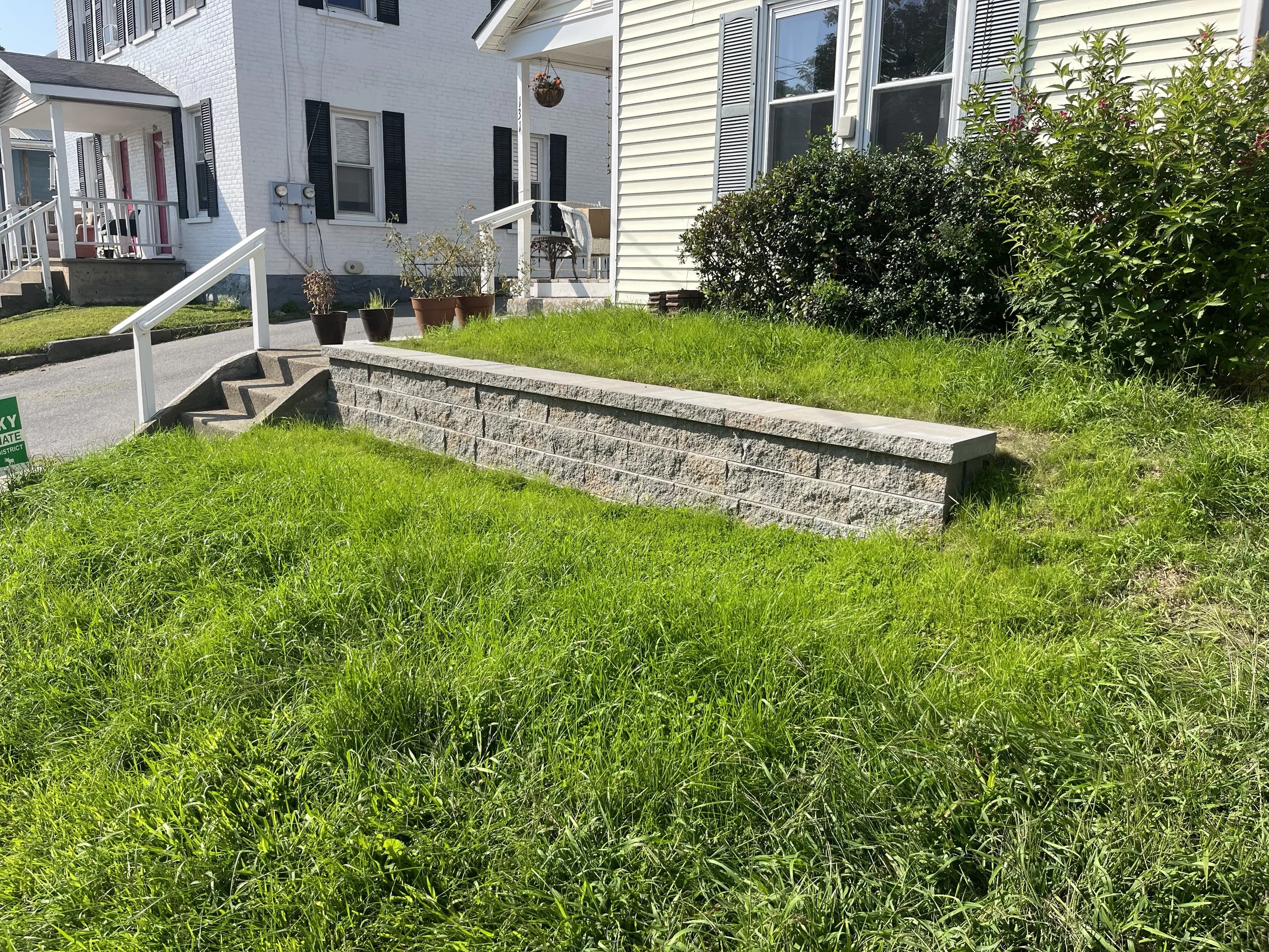 A seemingly simple transformation, yet a punishing amount of labor. The goal with this install was to make mowing easier and improve the aesthetics of the front of the house. Both were achieved and the client was happy.