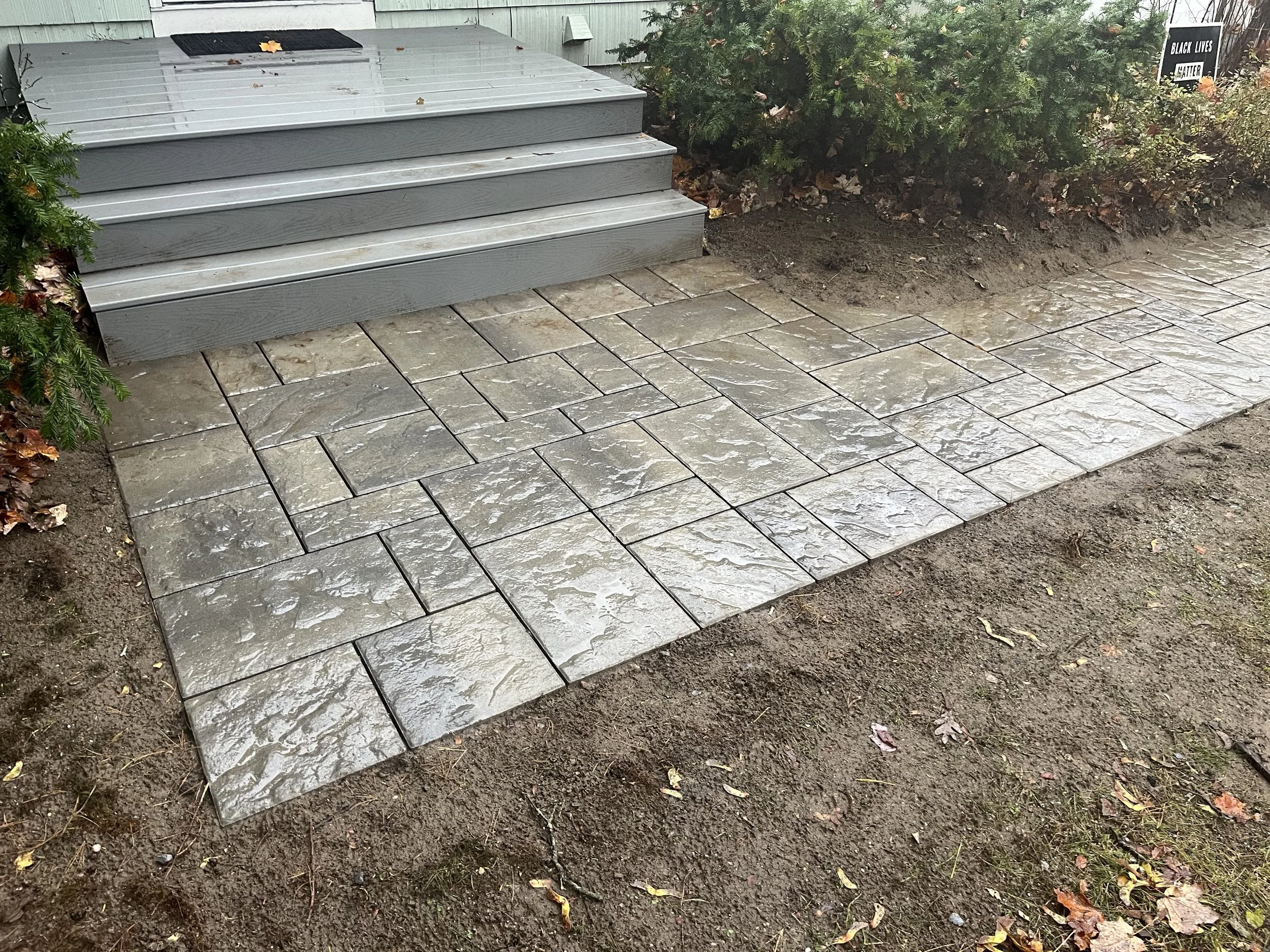 Lots of fun details in this long walkway including subtle steps up to the backdoor and greenhouse. Fixed some drainage / water pooling issues along the way. Just a few feet away from Ohavi Zedek, the oldest synagogue in Vermont and among the oldest still standing in the US.